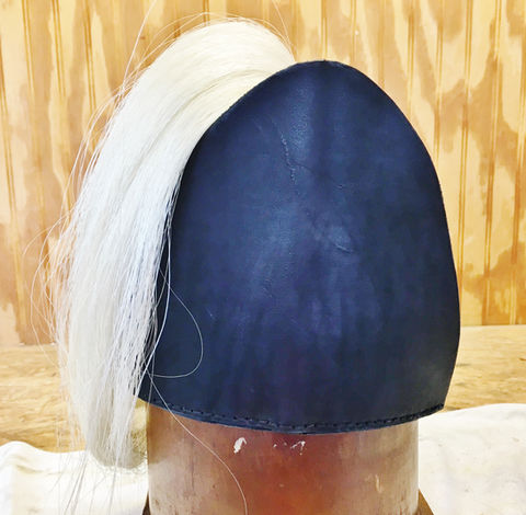 The pictures below show examples and cost of various helmets, shakos and bonnets produced by Hussar Saddlery in the past. Military Headware, style, and appointments vary greatly by era, nationality and branch of service. Hussar Saddlery can reproduce most styles in leather, fur and felt. We can also add simple metal work. Contact us on the specifics of what you are looking to have done and we will do our best to help you with your project.
